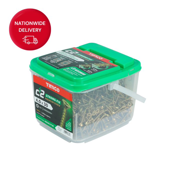Timco C2 Strong-Fix Screw 4.0 x 30mm PZ Double Countersunk Twin-Cut Yellow (1500) Tub