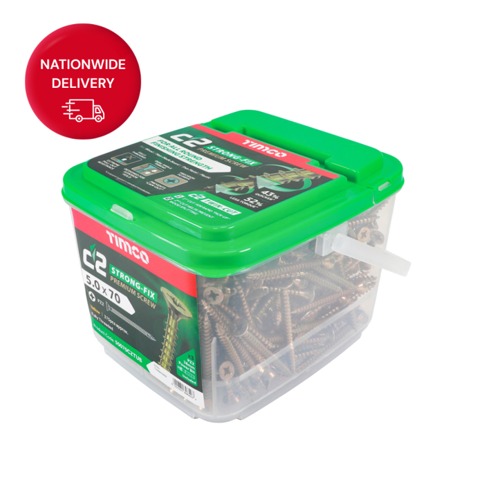 C2 Strong-Fix Screw 5.0 x 70mm PZ Double Countersunk Twin-Cut Yellow (375) Tub