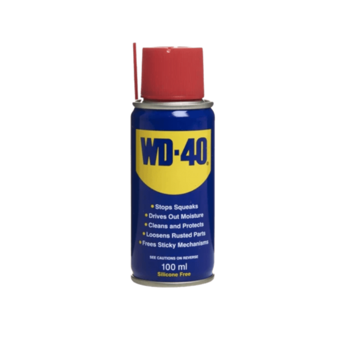Keep your tools, machines, and equipment in top condition with WD-40 Multi-Use Product (100ml) — the world-famous formula trusted by professionals and DIY enthusiasts alike. Compact yet powerful, this versatile aerosol spray is designed to lubricate, protect, clean, and displace moisture, making it an essential item in every toolbox, workshop, and household.
